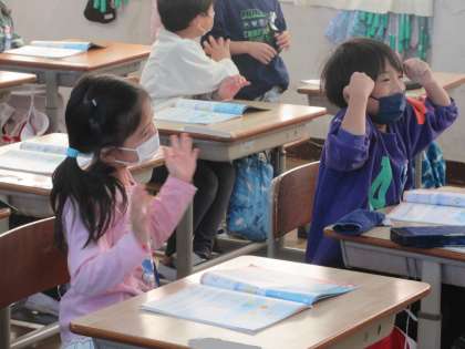 音楽の様子です。手拍子やお気に入りのポーズがあるようです。