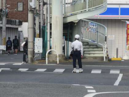 今日も警察の方が朝の登校時間帯に立ってくださっていました。