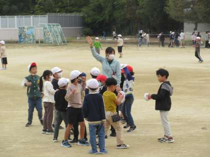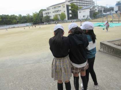 鬼ごっこをしていて、なかなか捕まえてくれないと嘆く3人は少し寒そうです。