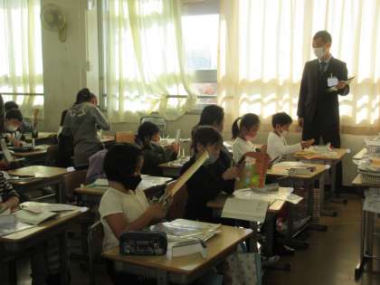 今日は市教育委員会から指導主事が来校され、2年生の学習の様子を参観いただきました。授業前の校長室、授業後の校長室には、指導主事に会いに来た高学年が楽しいひとときを過ごせたようです。