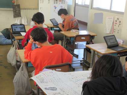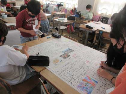 平和壁新聞の作成です。来週、各グループに分かれて平和学習報告会を行います。