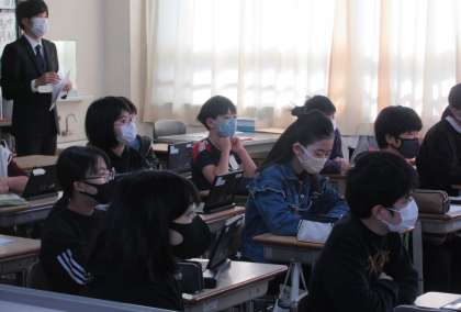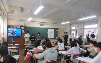 6年生は各クラス、平和学習報告会に向けた発表会です。静まり返った中、お互いの発表を心で聞いています。