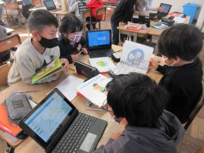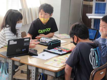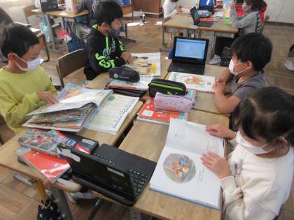 なにやら作戦会議です。1年生に絵本を紹介するそうです。