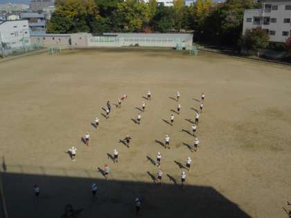 運動場での体育、縄跳びです。曲のテンポにあわせてリズムよく!です。