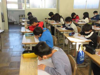 ついに漢字50問テストです。開始直前、緊張が走ります。検討を祈ります!