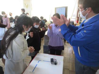 成功までに、何度もプログラムの微調整を行ったあとだけに、クリアの瞬間は大喜びです!