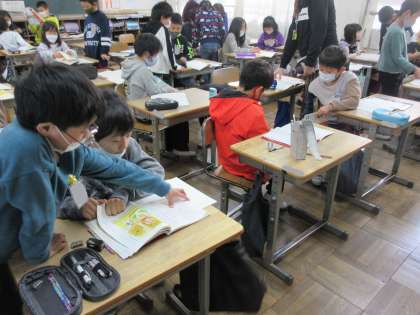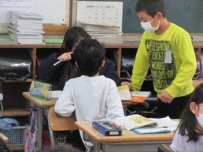 国語の学習です。一人で考えると一つだった意見も、話し合うことで3つにも4つにもなります。