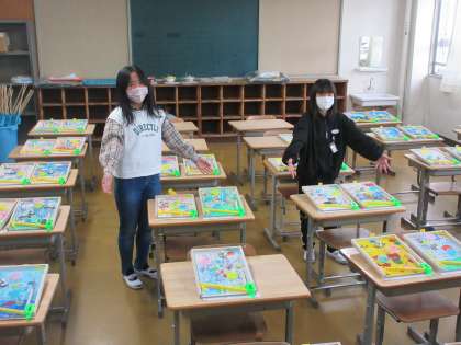 4年生は各教室横のフリールームでもコリントゲームを展示しています。 ぜひご覧ください。