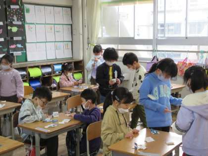 とても高く跳び様子を見て喜ぶ1年生と2年生です。