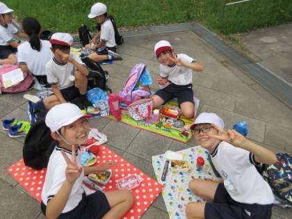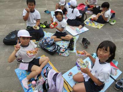 お待ちかねのお弁当。蓋を開けるときの子どもたちの表情がとても素敵です。