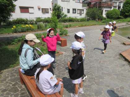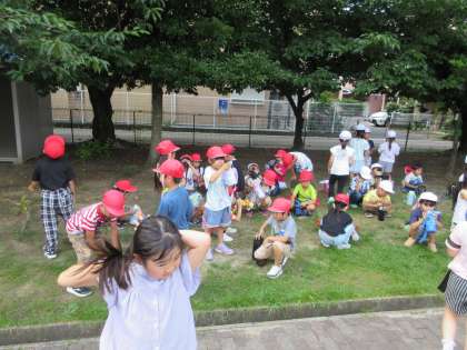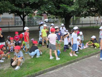 汗びっしょりになりながらひたすら遊んでいました。合間に飲むお茶がおいしそう。