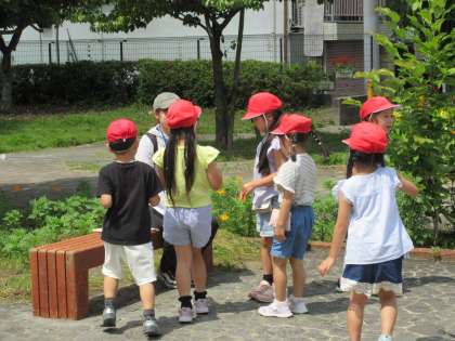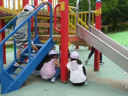 みんな仲良し。こんなに暑いのに子どもたちはくっつきあって遊びます。
