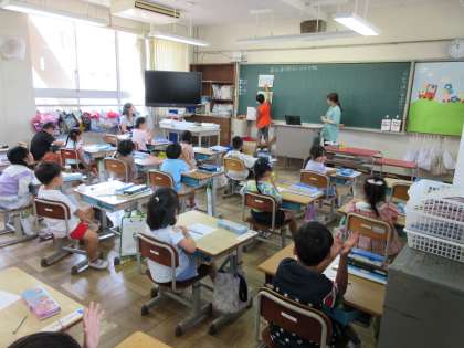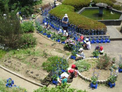 アサガオの観察。最近は好天に恵まれているためすくすく成長しています。