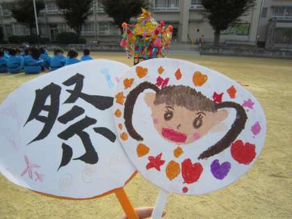 1年生は、2年生の後ろについて、「おまつりわっしょい」を元気よく歌います。