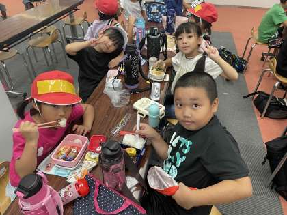 お家の方につくって頂いたお弁当を見せ合いっこしていました。
