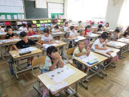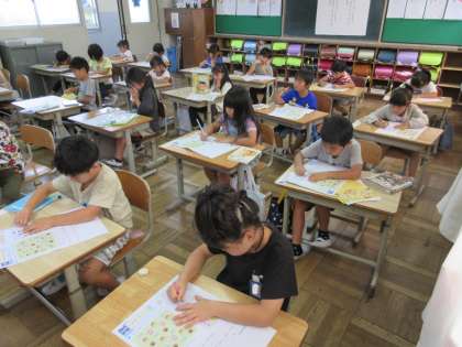 カタカナの練習、今日は最終回のようです。明日からはを漢字を習います。1年生が入学してから半年。勉強もどんど進んでいきますね。