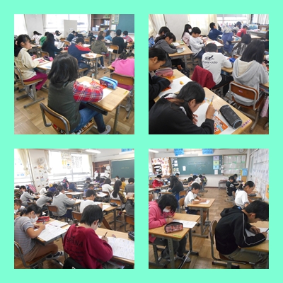 3組は漢字の自主勉強、4組は算数のテストをしていました。