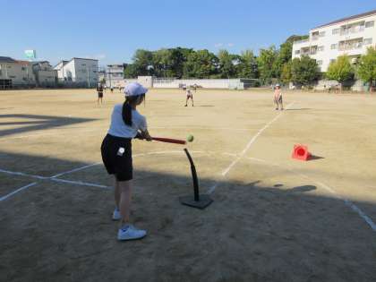 体育の授業でティーボールをしていました。最近、子どもたちが野球できる場所ってほとんどないと思います。私が子どものころは毎日のように空き地で遊んでいたのに...。