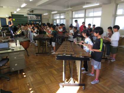 音楽会に向けた練習を学年合同でしていました。4年生も仕上がってきています