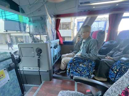 バスの中では早速ショータイム。楽しい旅の始まりです。