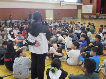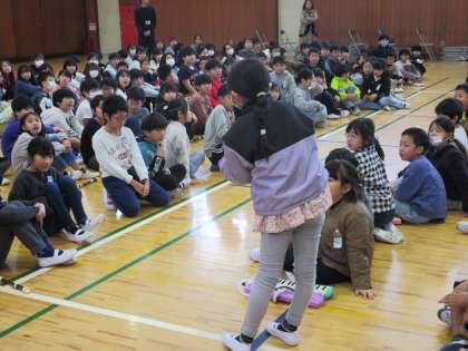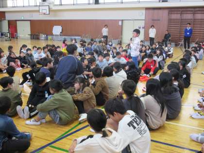 音楽会に向けて取り組んでいる内容を異学年交流。見せ合うだけではなく、きちんと言葉で交流するのがとても大切です。氷野小では1年生の時から力を入れています。