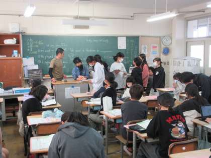 6年生は算数の時間グラフを見て分かることを相手に伝えていました。さすがは6年生。結論、理由、根拠がわかりやすい。身振り手振りを交えて伝えることができている子もいます。