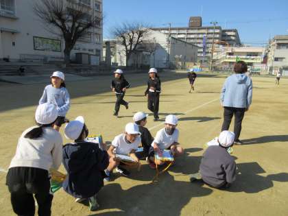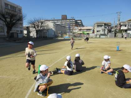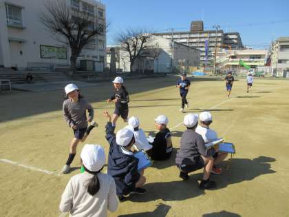 マラソン記録会をしていました。いつもより真剣な眼差しで走ることもたち。応援にも力がこもっています!
