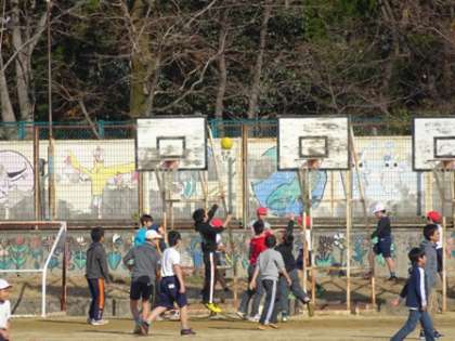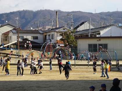 やはり子どもたちは、風の子です。長休時には今日も元気に運動場で動き回っています。運動場に出たら、動いていなければ寒いですからね。バレーボールをしているグループが二つありました。少人数ずつですが、対戦しているのです。上手くいかなくても楽しいのです。