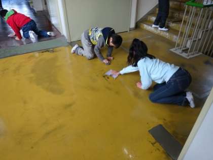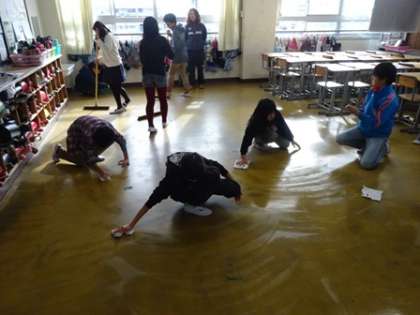 今日から掃除も始まりました。外へ出て行く階段付近は砂がいっぱい溜まっています。廊下や階段、教室の中も、年末に大掃除をしていますが、汚れやごみは出てきます。みんな、一生懸命にそれらを取り除いていました。今日もよくがんばりました。
