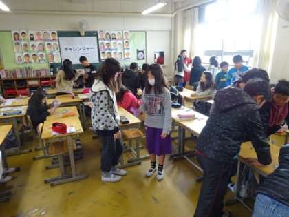 今日は、雨が降っていたので朝のマラソンも明日に延期になりました。長休時の運動場の遊びも出来ないので、教室での遊びになりました。