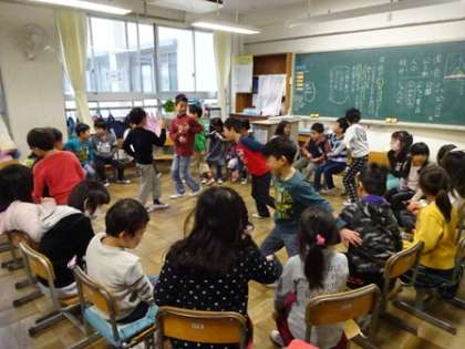 また、昼休みに2年生の教室に入ると、フルーツバスケットをみんなで楽しんでいました。終わりのチャイムが鳴ると、係の子が出てきて、終わりの挨拶をしていました。今日も、楽しい休み時間でしたね。