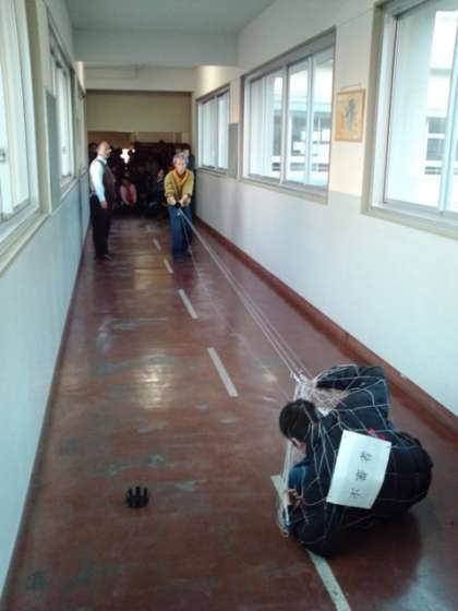 不審者対応訓練では、署員の方が演じる不審者に対して、実際にどう対応するか、本番さながらの訓練に教職員は緊張をして臨んでいました。また、防犯グッズ(さすまた・ネットランチャー等)使用についても、実際に体験を通して緊急時に備えました。