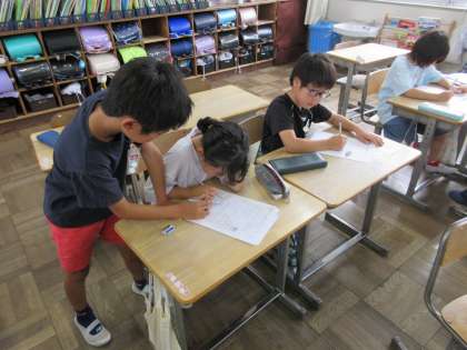 算数の時間「学び合い」の姿がよく見られます。頷きながら聞く姿がとても良いです。