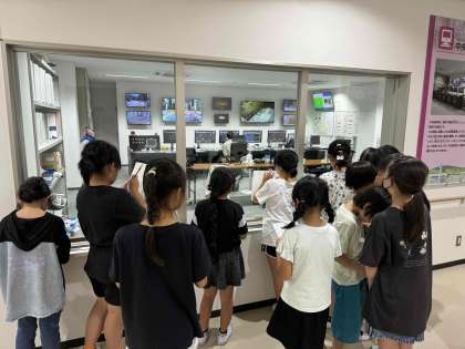 中央監視室やクレーン操作室などを見学。24時間体制で稼働し大東市、東大阪市の人々の暮らしを支えています。