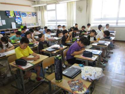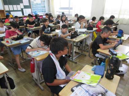 台風の特徴をタブレットPCで学習。動きを動画で実際にみるとわかりやすいですね。