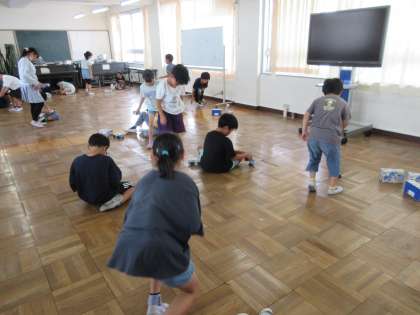 4階の広い多目的室で理科の実験に使ったモーターカーを走らせていました。彼らの歓声は1階にも響き渡っていました。かなり面白かったようです。