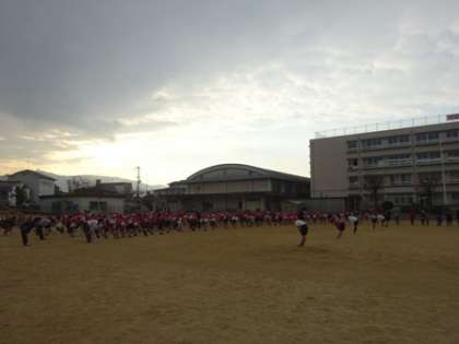 先週は、雨で出来ない日があったので、今日はマラソン3日目です。久しぶりですが、みんなよく走っていました。走り終わってから先週よりも長く走った人を聞かれると、たくさん手を挙げていました。