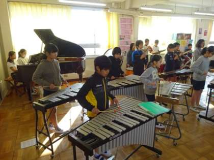 27日に行われる「4・5・6年音楽会」に向けて各クラス練習に熱が入っています。音楽室に入ると6年生が合奏をしていました。