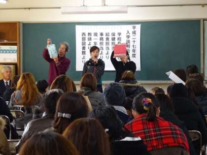 来年度の新入学生保護者に向けた説明会を行いました。寒い中、たくさんの出席をいただきました。入学の準備について各担当から具体物も示しながらお話ししましたが、皆さん熱心に聞いていただきました。