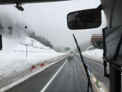 かなり近づいてきました。トンネルを幾つもくぐって、くぐるたびに少しずつ雪景色が変わってきています。