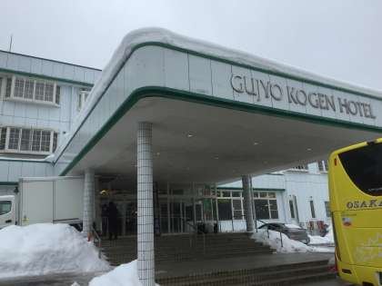 郡上高原ホテルに着きました。只今、入館して部屋割りをしています。雨はかなり小降りになっています。スキー教室が始まる時にはやんでくれると良いのですが。でもこの位だと十分に出来ます。