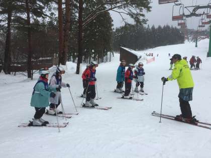 スキー学教室の続きです。アップする時刻がリアルタイムでは有りません。予定通り3時15分に教室は終わり、小雨が降り続いていましたので雪遊びは中止しました。その分少し早めに夕食の時間となり、5時45分にご馳走様をしました。追ってアップしていきます。