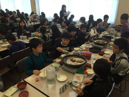 朝食の様子です。みんな食欲旺盛です。元気にスキー教室が始められそうです。