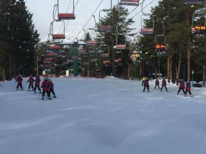 スキー教室が続きます。今日は昨日の雨と違って雪がチラついています。いろんな雪山の景色を観る事ができます。その中で出来るスキー学習は素晴らしい事です。