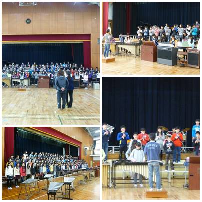 1月27日の校内音楽に向けて6年生合同で練習をしました。