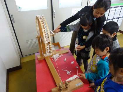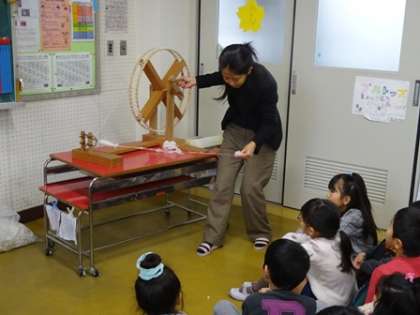糸車ってどんなものかなー?実際に見てみたいなあ、ということで、「大東市立歴史とスポーツふれあいセンター」内にある「大東市立歴史民俗資料館」から主任学芸員の武井先生に来ていただきました。