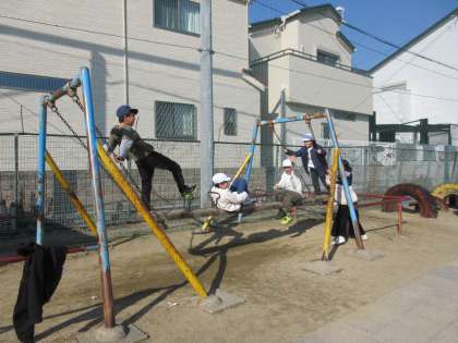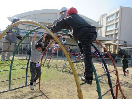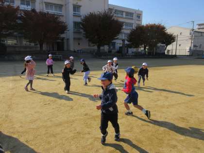 今日はとても暖かいです。休み時間の運動場にはたくさんの子どもが集まっています。