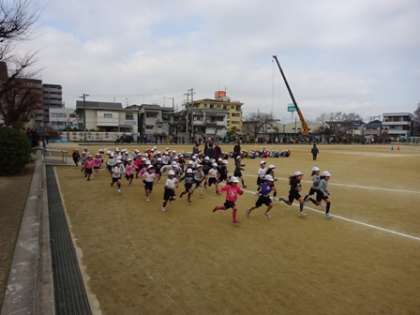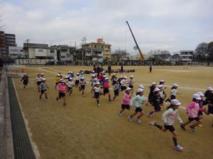 3時間目は、1年生。1年生にとっては初めてのマラソン大会。スタートから大変な勢いで走っていきます。