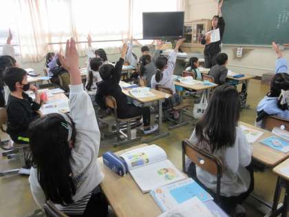 2年生の子どもたちは授業中発言したくて仕方がないようです。相互指名をしているので当てて欲しいオーラをいっぱいに表現しながら挙手しています。中にはお尻の浮いている子も。