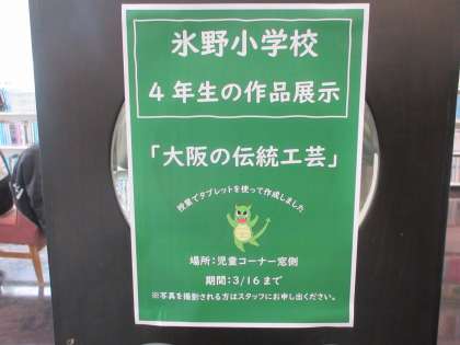 社会科で「大阪府の伝統工芸」をテーマに作ったPRシートが西部図書館に展示されています。展示期間は3月16日までです。お時間がある方は是非ご覧になっていただければと思います。